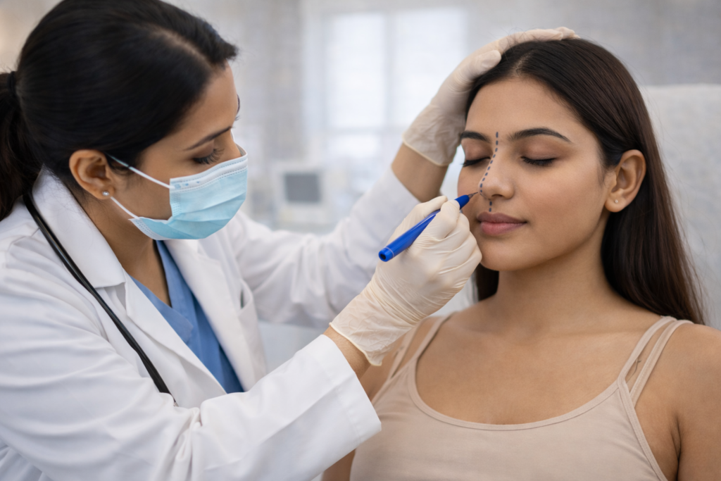 Improve facial symmetry and aesthetics with the most refined, balanced nose reshaping surgery in India, designed for your features.